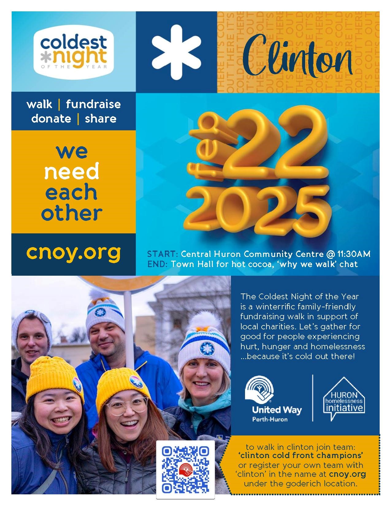 The Coldest Night of the Year is a winterrific family-friendly fundraising walk in support of local charities. Let's gather for good for people experiencing hurt, hunger, and homelessness...because it's cold out there!